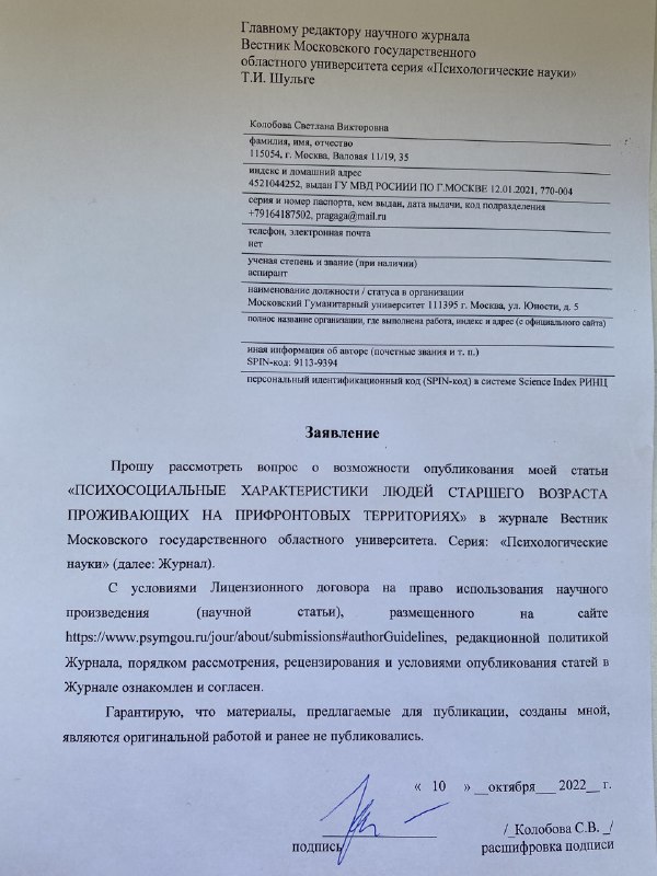 Цель выявление психосоциальных характеристик лиц старшего возраста, проживающих на прифронтовых территориях.